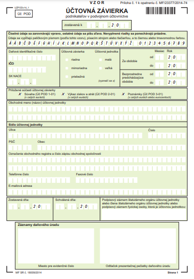Vzory tlačív účtovnej závierky pre jednotlivé typy účtovných jednotiek sú dostupné na webovom sídle Ministerstva financií Slovenskej republiky v časti Vzory tlačív.
